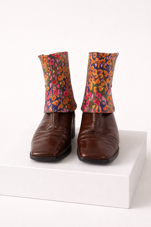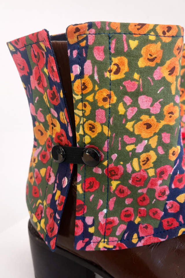Ces guêtres textiles se portent par-dessus vos chaussures pour allier protection et style. Leur tissu résistant à motifs fleurs colorées apporte une touche originale tout en protégeant des projections et du froid. Faciles à enfiler, elles offrent un maintien confortable et restent bien en place tout au long de la journée.