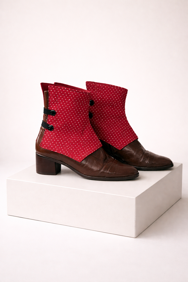 Ces guêtres textiles se portent par-dessus vos chaussures pour allier protection et style. Leur tissu résistant à motifs pois blanc apporte une touche originale tout en protégeant des projections et du froid. Faciles à enfiler, elles offrent un maintien confortable et restent bien en place tout au long de la journée.